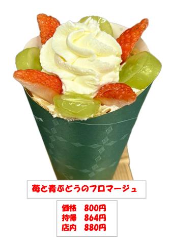 生クリームと苺、青ブドウとクリームチーズを入れたクレープです。