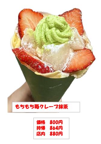 生クリームと抹茶クリームに苺と求肥が入ったクレープです。