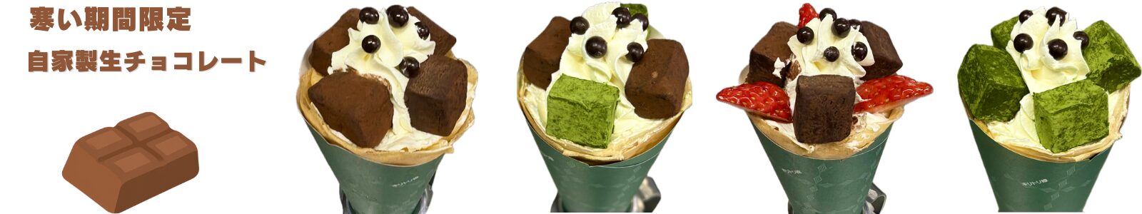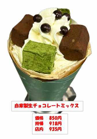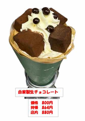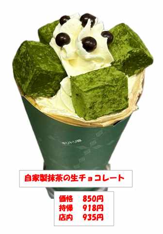 生クリームと手作りの生チョコレートと抹茶の生チョコレートが入ったクレープです。